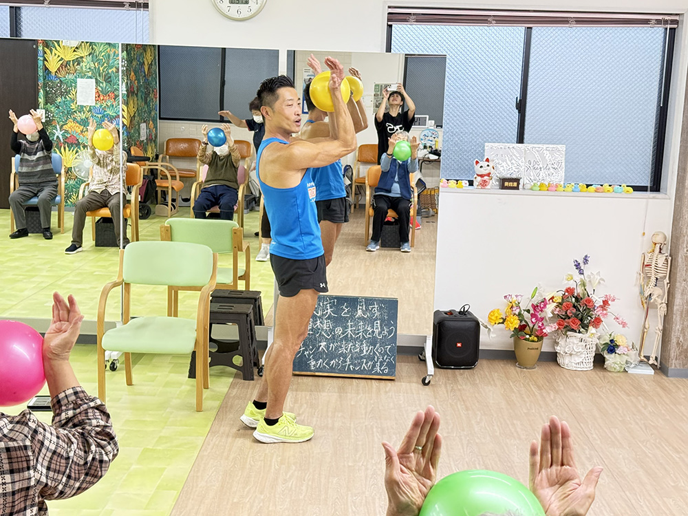 私たちは「できることを増やそう!」を合言葉に、楽しく体を動かしながら、体幹や上下肢の筋力アップを目指します。さらに、認知機能の維持・改善にも取り組んでいます。